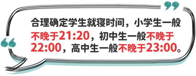 二、明確學生睡眠時間要求。根據不同年齡段學生身心發(fā)展特點,小學生每天睡眠時間應達到10小時,初中生應達到9小時,高中生應達到8小時。學校、家庭及有關方面應共同努力,確保中小學生充足睡眠時間。