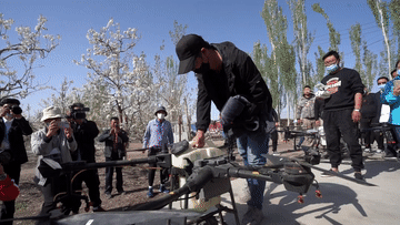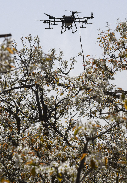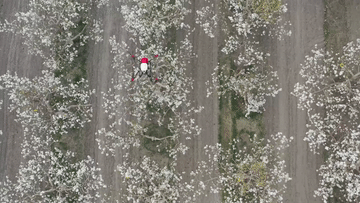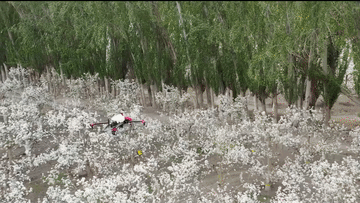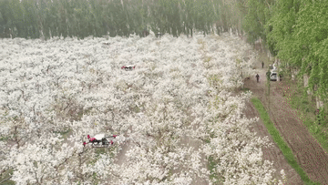 在新疆南疆等地,梨樹花期很短,且往往伴隨沙塵天氣,梨樹授粉作為梨產(chǎn)業(yè)發(fā)展中最為關(guān)鍵的一環(huán),以往通過人工授粉或者蜜蜂授粉進(jìn)行。隨著人工成本不斷增加以及產(chǎn)業(yè)健康發(fā)展需要,以蜜蜂采集的高活性授粉用花粉聯(lián)合無人機(jī)噴施的蜂機(jī)協(xié)同作業(yè)高效液體授粉技術(shù)開始出現(xiàn)。