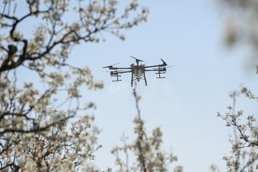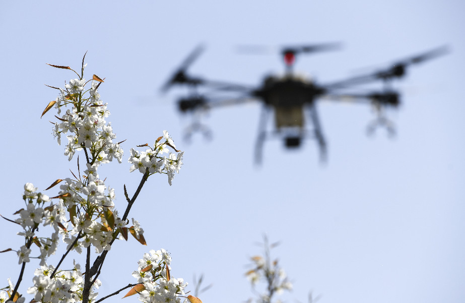 據(jù)中國農(nóng)業(yè)科學(xué)院蜜蜂研究所介紹,這種技術(shù)具有效率高、坐果勻和成本省等特點(diǎn)。1架無人機(jī)可在1小時內(nèi)為40畝果園授粉,效率是人工的50至60倍。采取蜂機(jī)協(xié)同作業(yè)高效液體授粉技術(shù)可使香梨每畝增產(chǎn)500公斤以上。目前,采用無人機(jī)給梨樹授粉成為越來越多梨農(nóng)的選擇。