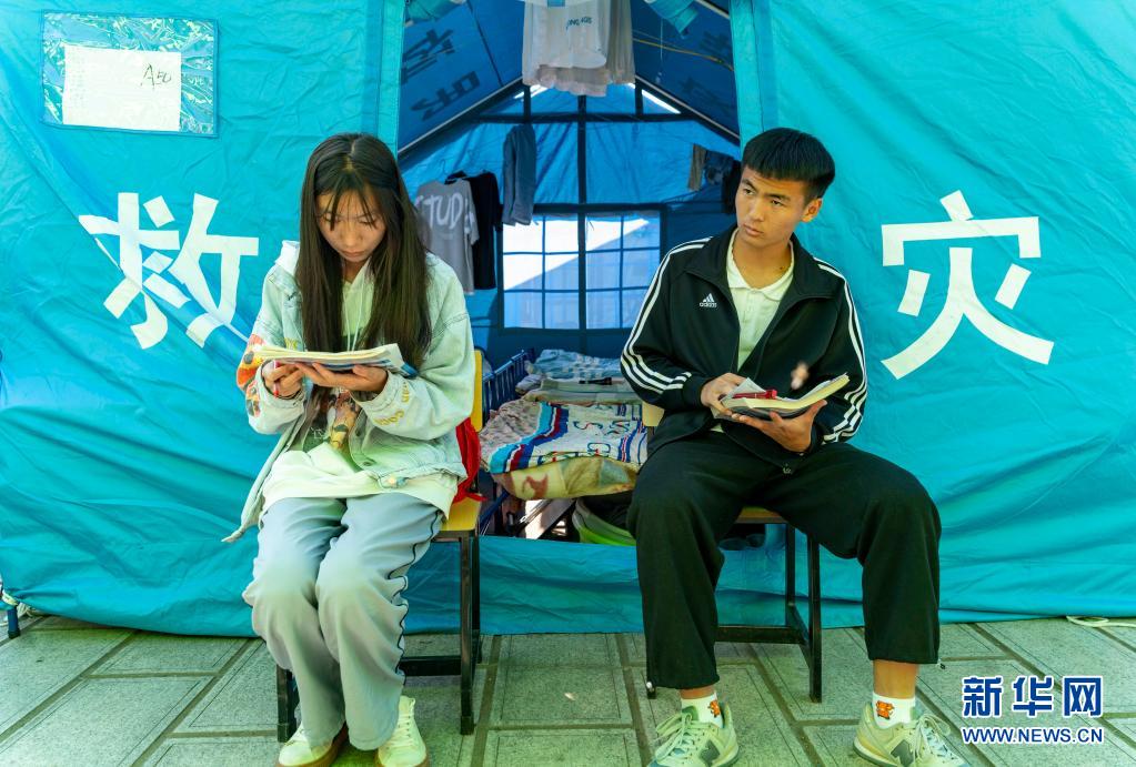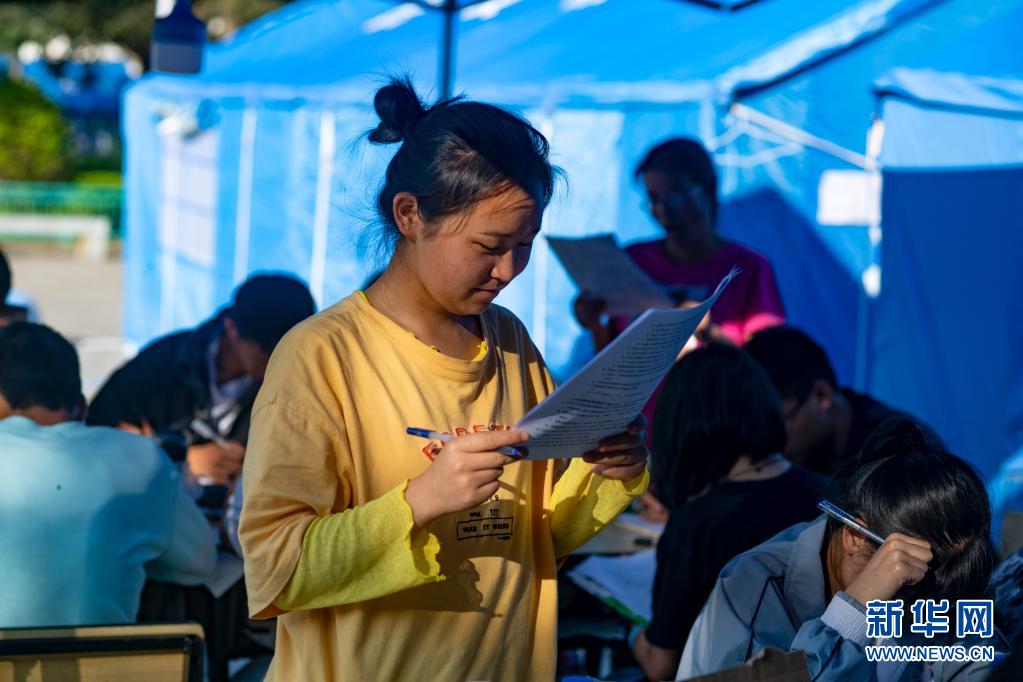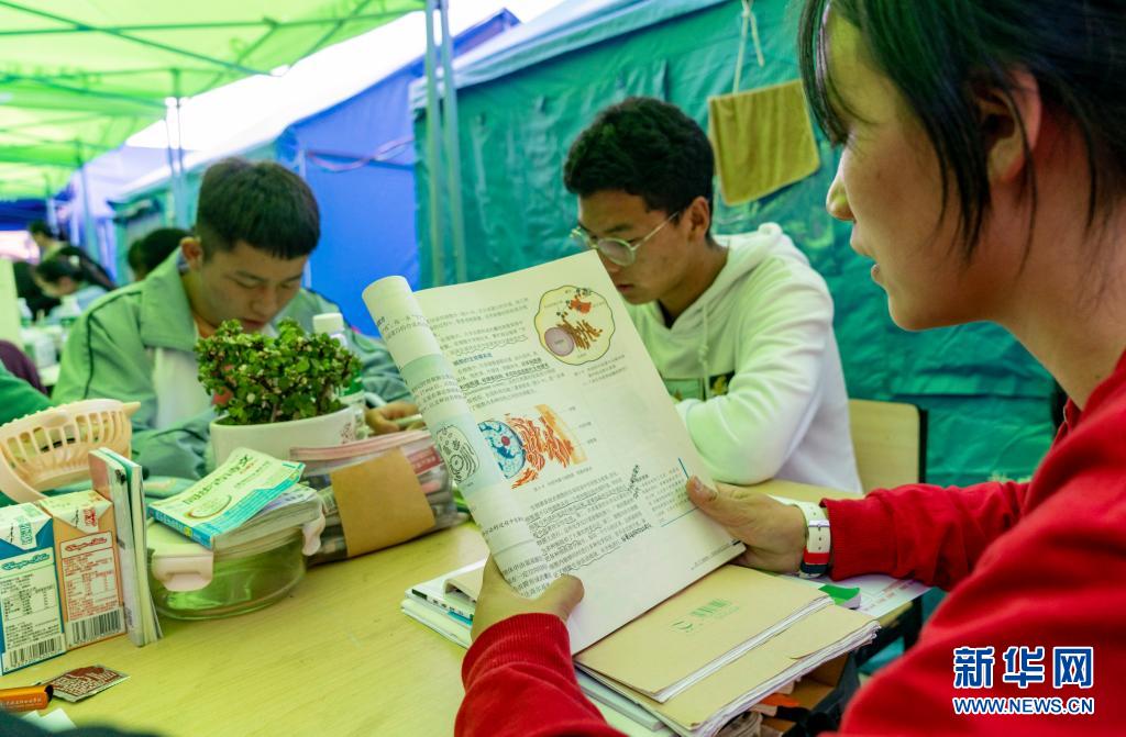 5月24日,漾濞一中高三年級(jí)學(xué)生在帳篷下學(xué)習(xí)。新華社記者胡超攝