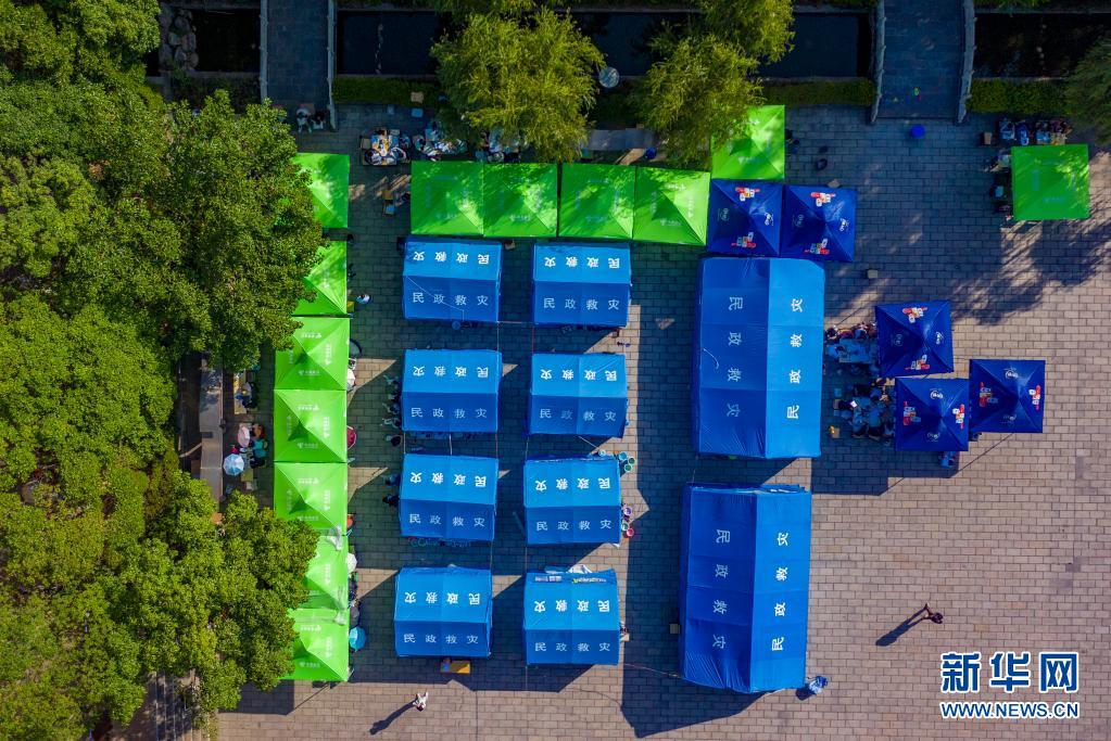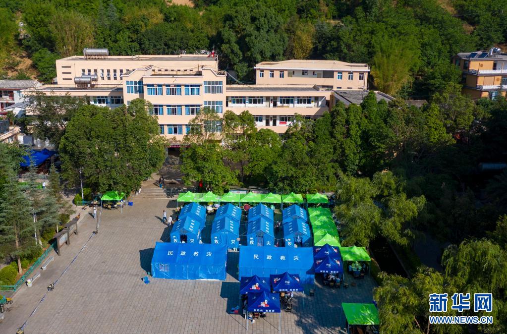 5月24日拍攝的漾濞一中操場上搭建起的帳篷(無人機(jī)照片)。新華社記者胡超攝