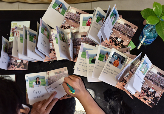 高考后的聯(lián)歡會(huì)上,我把這一年拍的照片做成的攝影書(shū),送給了每位學(xué)生。學(xué)生們也每人寫了一封信,湊成一大本書(shū)送給我。最讓我高興的話是:“老師,雖然我現(xiàn)在的成績(jī)不好,但是我會(huì)在未來(lái)繼續(xù)學(xué)習(xí),上??坪笠惨獙I荆佳芯可?。”