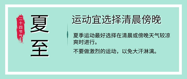 夏季運(yùn)動(dòng)時(shí)間宜在清晨或傍晚,此時(shí)天氣涼爽,可以采用健步走、慢跑、太極拳等運(yùn)動(dòng)緩和的項(xiàng)目進(jìn)行體育鍛煉,宜避開烈日熾熱之時(shí)且不宜做過分劇烈的活動(dòng),以免汗出太過,損傷陽氣,耗傷陰氣,且運(yùn)動(dòng)后不可用冷水淋浴或沖頭。