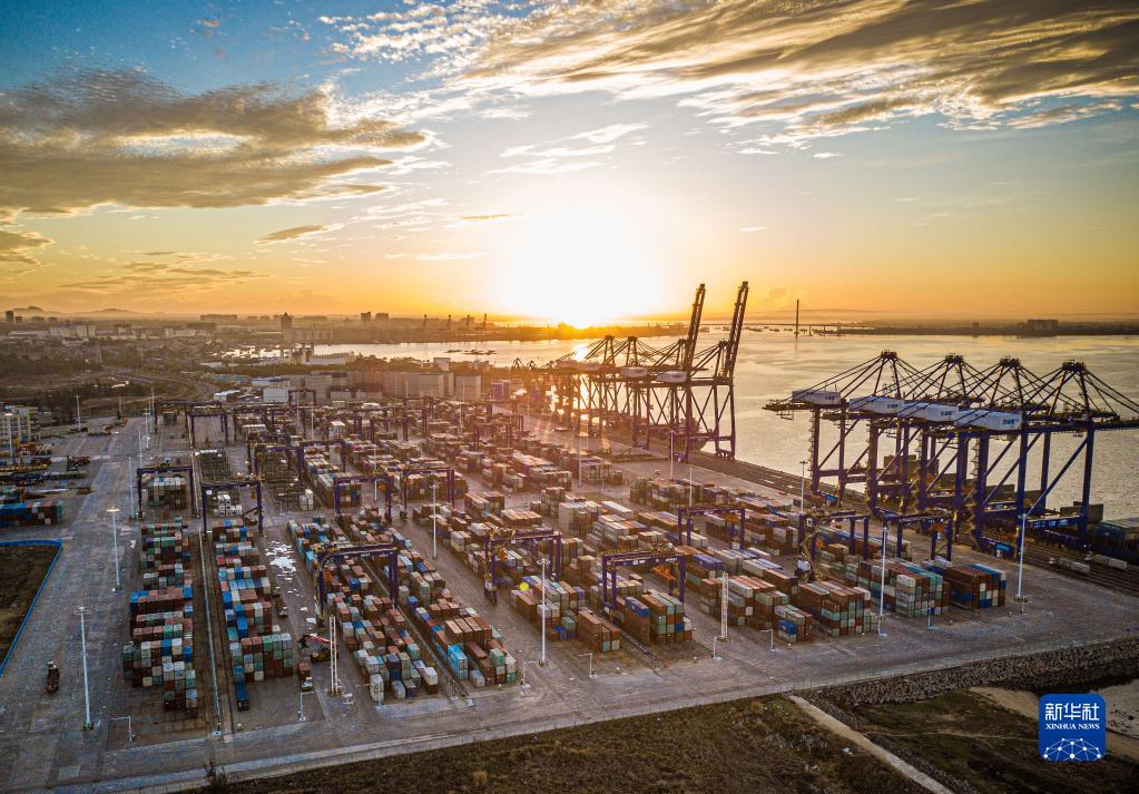 這是5月26日在海南洋浦經(jīng)濟(jì)開發(fā)區(qū)拍攝的洋浦國際集裝箱碼頭(無人機(jī)照片)。新華社記者 蒲曉旭 攝