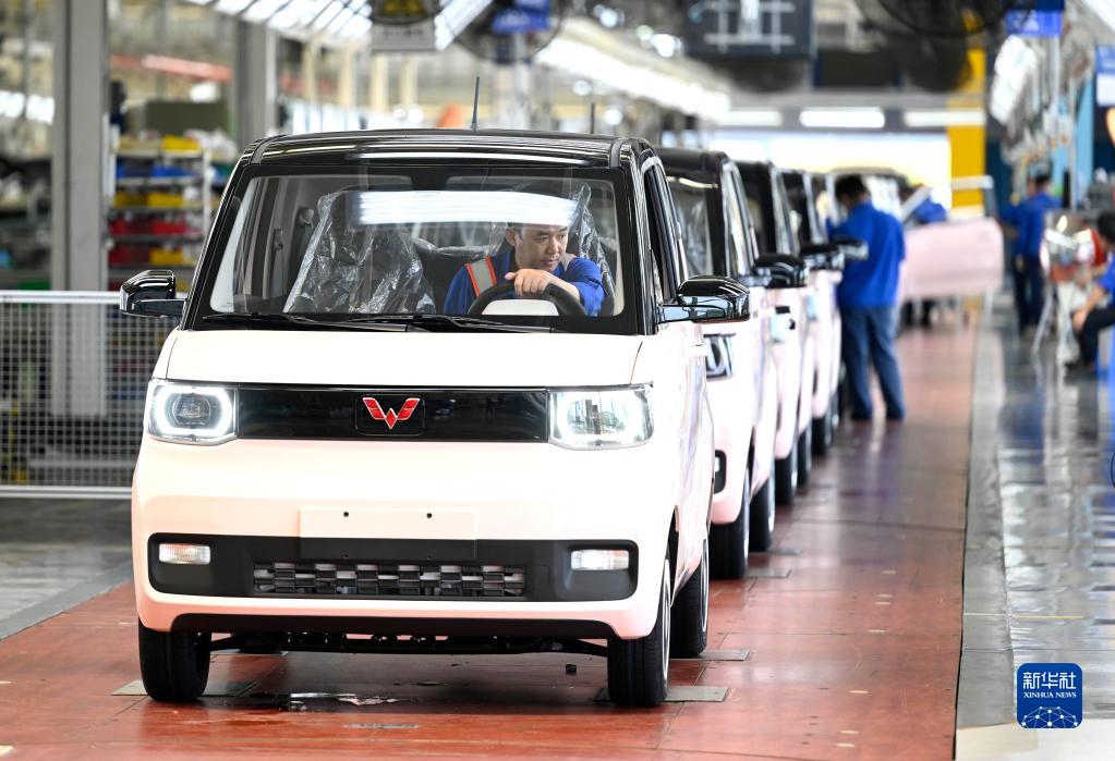 在廣西柳州一家汽車企業(yè),工人在新能源汽車生產(chǎn)線上忙碌(8月12日攝)。新華社發(fā)(黎寒池 攝)