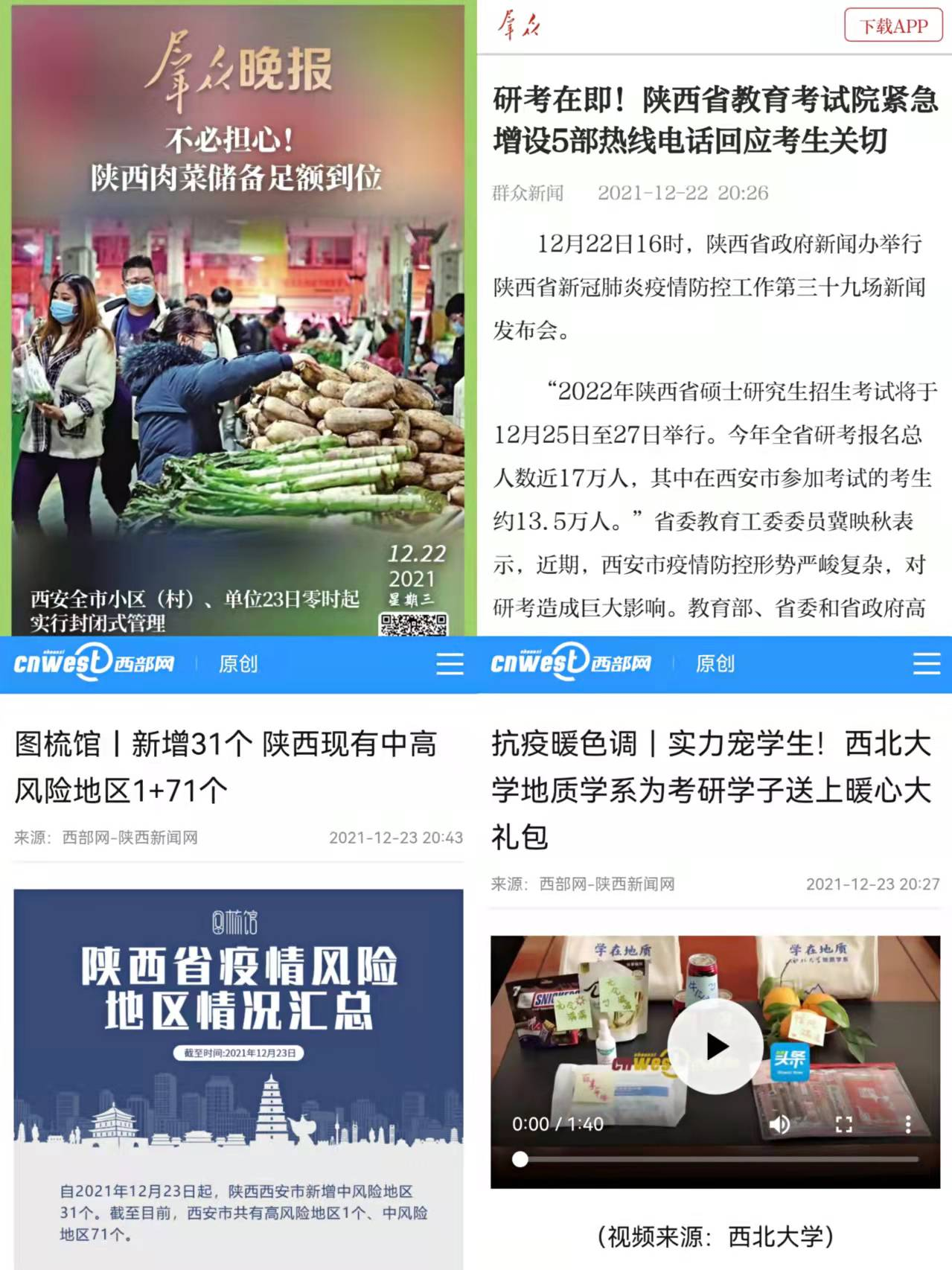 關(guān)注中小學(xué)停課不停學(xué)精彩不打折,發(fā)布忙碌在抗擊疫情一線的溫暖畫面,關(guān)切疫情之下的研究生考試……群眾新聞網(wǎng)、西部網(wǎng)、西安發(fā)布等省市重點網(wǎng)絡(luò)媒體也紛紛響應(yīng)倡議,深入一線挖掘戰(zhàn)疫身邊的真善美,用暖視頻、暖照片、暖文字驅(qū)散人民群眾在冬日里的寒冷與疫情中的陰霾。