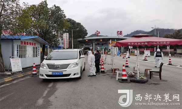 工作人員在縣城南門高速路口健康服務(wù)點查驗車輛及人員