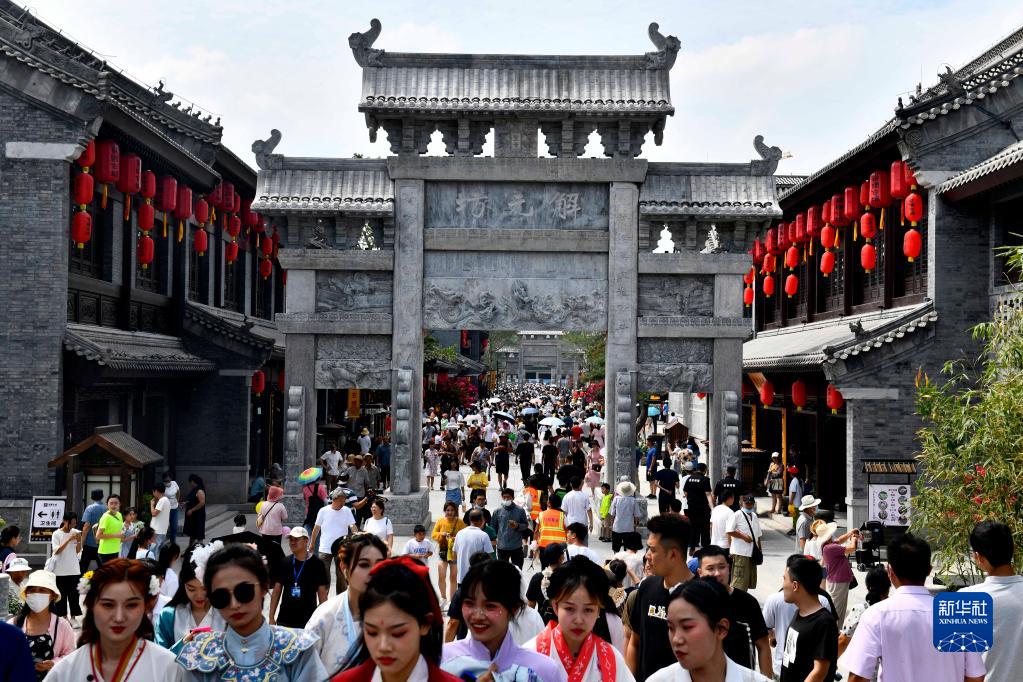 游客在山東省莒縣莒國(guó)古城商業(yè)街區(qū)游覽(7月24日攝)。新華社記者 郭緒雷 攝