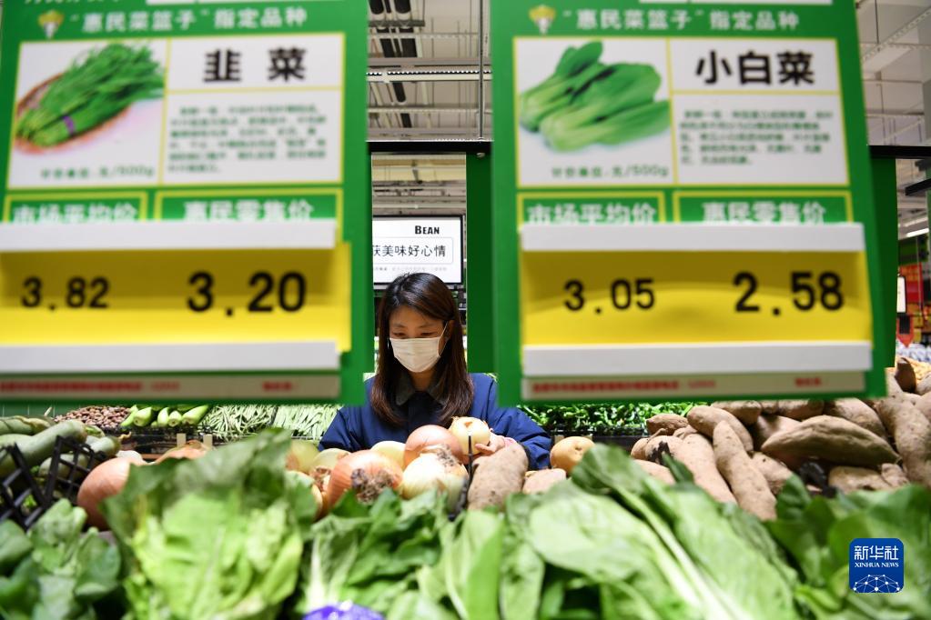 市民在安徽省合肥市經(jīng)開(kāi)區(qū)芙蓉社區(qū)一家超市選購(gòu)“惠民菜”(11月7日攝)。新華社記者 劉軍喜 攝