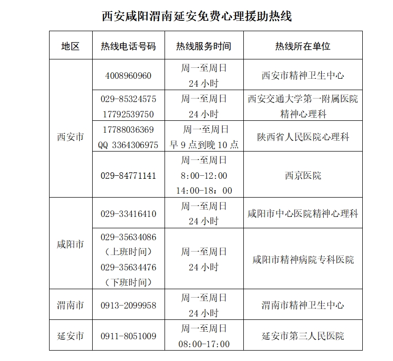 省新冠肺炎疫情醫(yī)療救治心理干預(yù)專家組,組建心理援助熱線工作團(tuán)隊(duì),24小時(shí)為疫情心理求助者提供心理援助服務(wù)。同時(shí),省衛(wèi)生健康委會(huì)同省政務(wù)服務(wù)中心在省12320衛(wèi)生熱線開(kāi)通疫情心理援助熱線專席,依托陜西12345對(duì)全省有關(guān)疫情心理干預(yù)的訴求進(jìn)行引導(dǎo)和分轉(zhuǎn)。