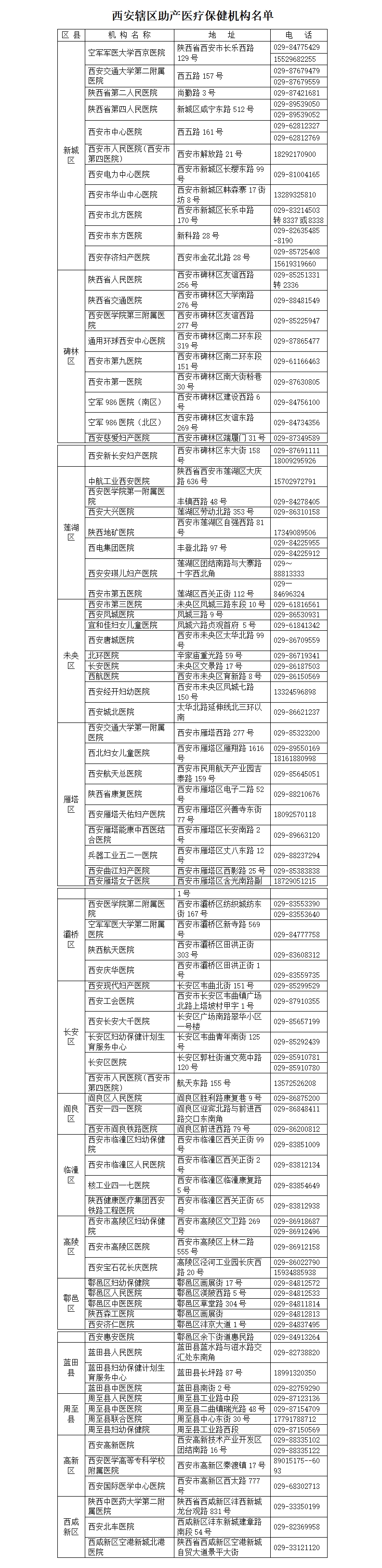 近期陜西省衛(wèi)生健康委整理發(fā)布了西安轄區(qū)助產(chǎn)醫(yī)療保健機(jī)構(gòu)名單(見(jiàn)下表),其他地市助產(chǎn)醫(yī)療保健機(jī)構(gòu)名單由當(dāng)?shù)匦l(wèi)生健康部門(mén)自行發(fā)布。如有診療需求,請(qǐng)前往各助產(chǎn)醫(yī)療機(jī)構(gòu)就診。