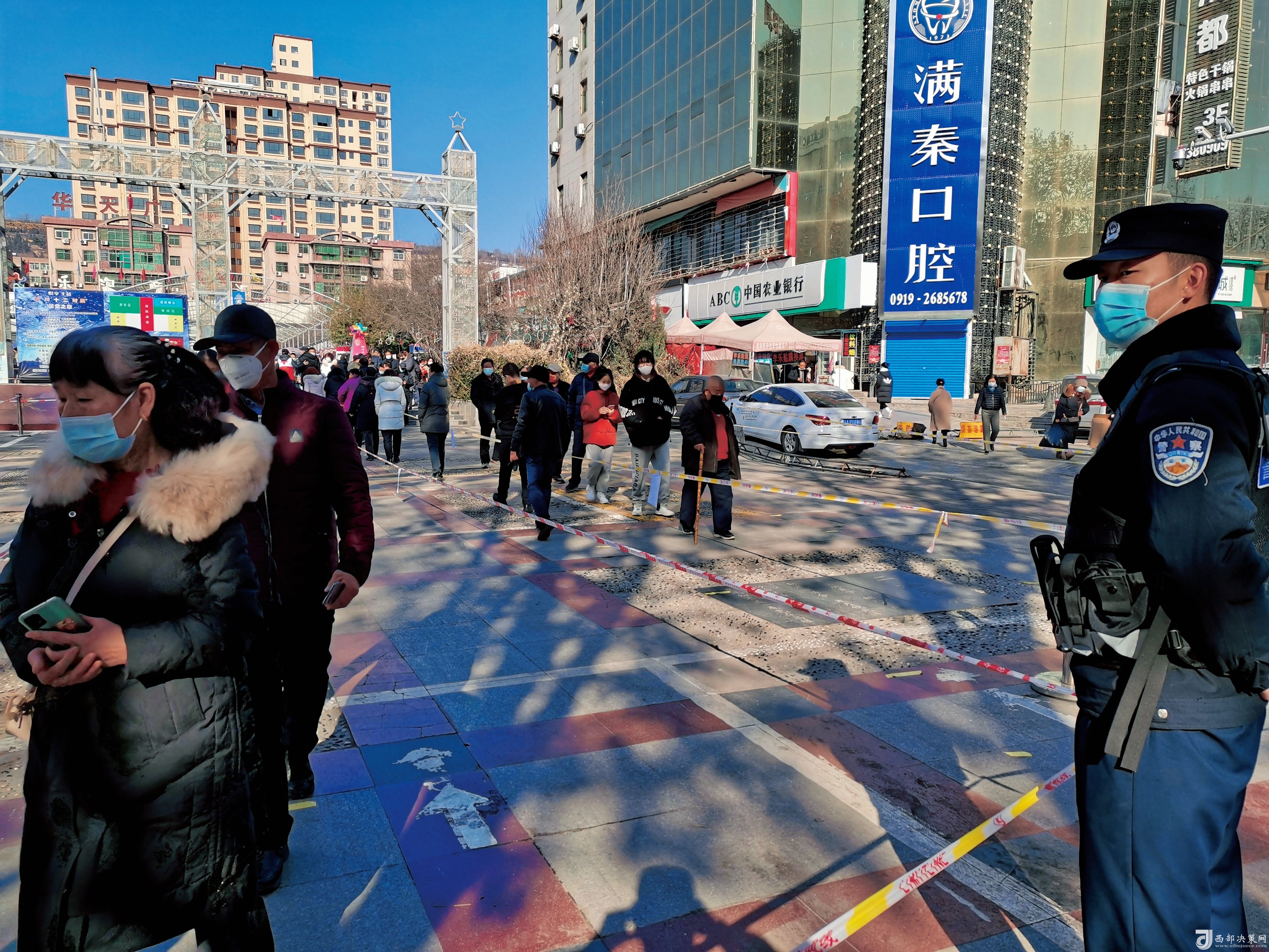 因?yàn)橐咔樗僚?,銅川市王益區(qū)華天廣場專門設(shè)立了核酸檢測站,在每天早上八點(diǎn)到下午六點(diǎn),為源源不段的市民進(jìn)行核酸檢測,紅旗街派出所隨即展開了維護(hù)秩序的工作,向檢測站提供建議,倡導(dǎo)大家井然有序,保持距離。