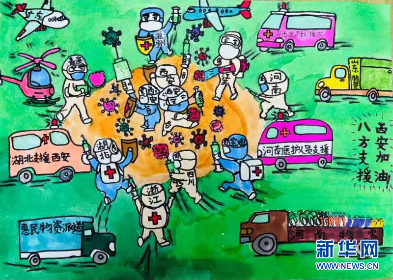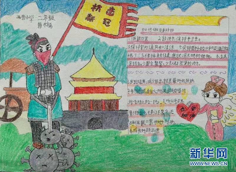 1月2日,西安市鄠邑區(qū)甘亭中心學(xué)校的孩子們用最自己的方式宣傳居家防疫知識,用手中的畫筆表達他們對抗疫英雄的贊美,為抗疫一線的英雄加油!為西安加油?。◤埶妓?趙影超 王展榮)