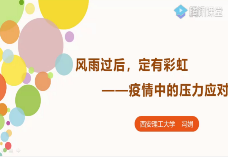 心理健康教育中心還積極組織學生收看陜西省委教育工委推出“京陜抗疫心理講堂”系列公益講座,從壓力應對、情緒管理、朋輩支持、疫情戀愛、校職轉換等多個角度策劃學生心理調適專題“云講座”,緩解學生因封控產生的心理壓力。