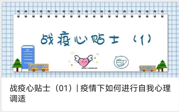 疫情防控期間,考慮到學生學習生活場所受限,學生情緒容易受到環(huán)境影響。心理健康教育中心通過新媒體開展“戰(zhàn)疫心貼士”、心語FM專欄,每天為該校學生推送疫情心理調節(jié)小妙招及各類心理援助資源。相繼發(fā)布的15篇推文有效地幫助學生們掌握了有關疫情的心理健康知識,學會了自我健心減壓,引導他們理性對待疫情,不恐慌、不信謠、不傳謠,保持良好心理狀態(tài)。