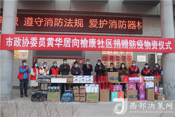 西部決策網(wǎng)訊 1月5日下午,榆林市政協(xié)委員、民盟盟員、陜西浙能能源開發(fā)有限公司董事長黃華居走進(jìn)沙河路街道榆康社區(qū)將愛心防疫物資和慰問品送到一線防疫工作人員手中,助力疫情防控,充分彰顯了政協(xié)委員的責(zé)任和擔(dān)當(dāng)。市政協(xié)秘書長柴自軍、提案委主任郭麗芳參加捐贈(zèng)儀式,柴自軍秘書長為政協(xié)委員黃華居頒發(fā)了榮譽(yù)證書,表彰他在新冠肺炎疫情工作中的善行義舉。