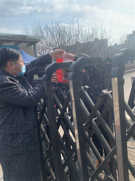 南校區(qū)家屬區(qū)開始封閉管理,一些租住在家屬院的已退宿延期畢業(yè)學生由于不會做飯,就餐成了難題,于是,輔導員楊笑宇化身“外賣小哥”,前往食堂、超市、面包店采購一大包食品和生活用品,透過家屬區(qū)的大門交到學生手中,解決了學生的溫飽難題。