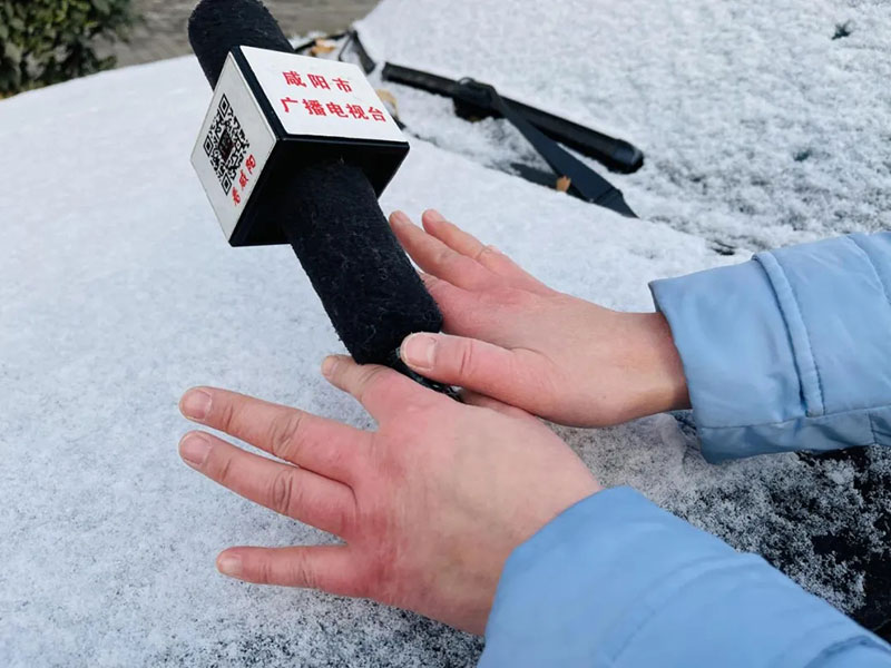2021年12月26日,冒著風(fēng)雪嚴(yán)寒在戶外連續(xù)工作幾個小時,咸陽市廣播電視臺記者王倩的雙手凍得通紅。