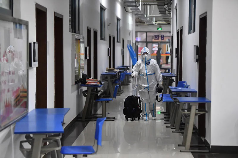 2021年12月25日,華商報記者寧峰(右)在西安市胸科醫(yī)院污染區(qū)采訪。
