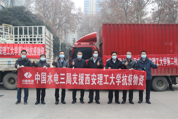 中國水電三局黨委書記、董事長張育林得知學(xué)校急需防疫和生活物資后,要求特事特辦,急事急辦,1月4日中午,中國水電三局緊急采購的醫(yī)用外科口罩、84消毒液、過氧乙酸、水洗手消毒凝膠等第一批防疫抗疫物資即送達西安理工大學(xué)。