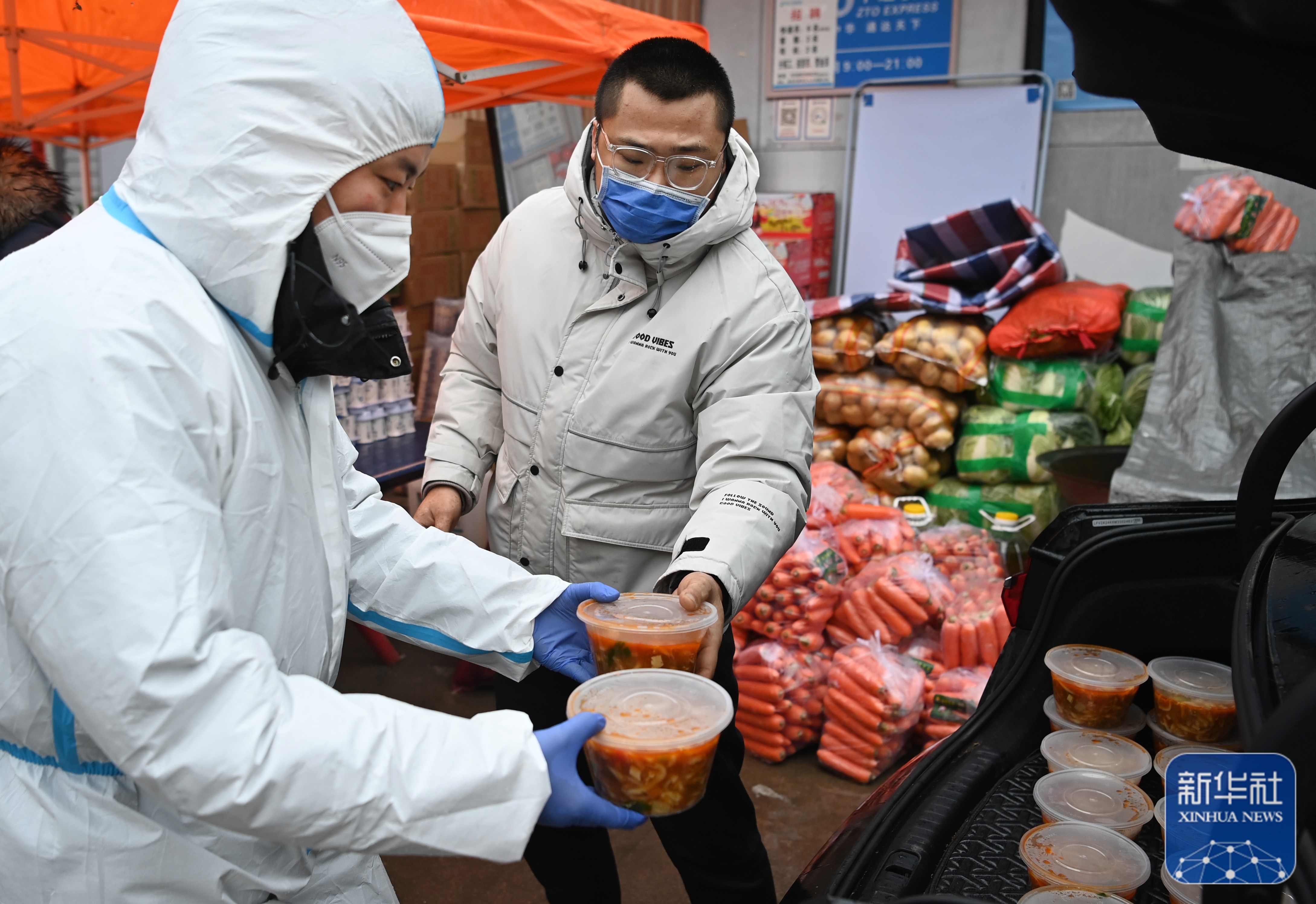 1月8日,許凱(右) 與志愿者一起出門運(yùn)送“愛心餐”。