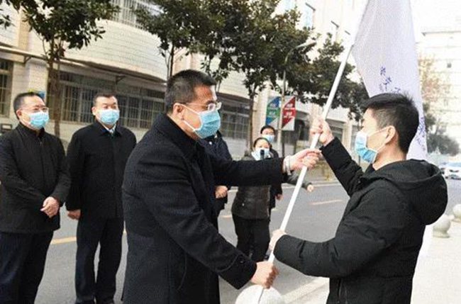 超聲科規(guī)培醫(yī)師白曉旭從院黨委副書記馮廣林手里接過(guò)隊(duì)旗時(shí)鄭重表示:“一定不負(fù)一附院培育,不畏艱險(xiǎn),不辱使命,嚴(yán)格規(guī)范操作,堅(jiān)決完成任務(wù)。”來(lái)自西藏阿里地區(qū)委派的2名住培醫(yī)師晉美加措和米瑪占堆也毅然加入到了這場(chǎng)抗疫阻擊戰(zhàn)中。