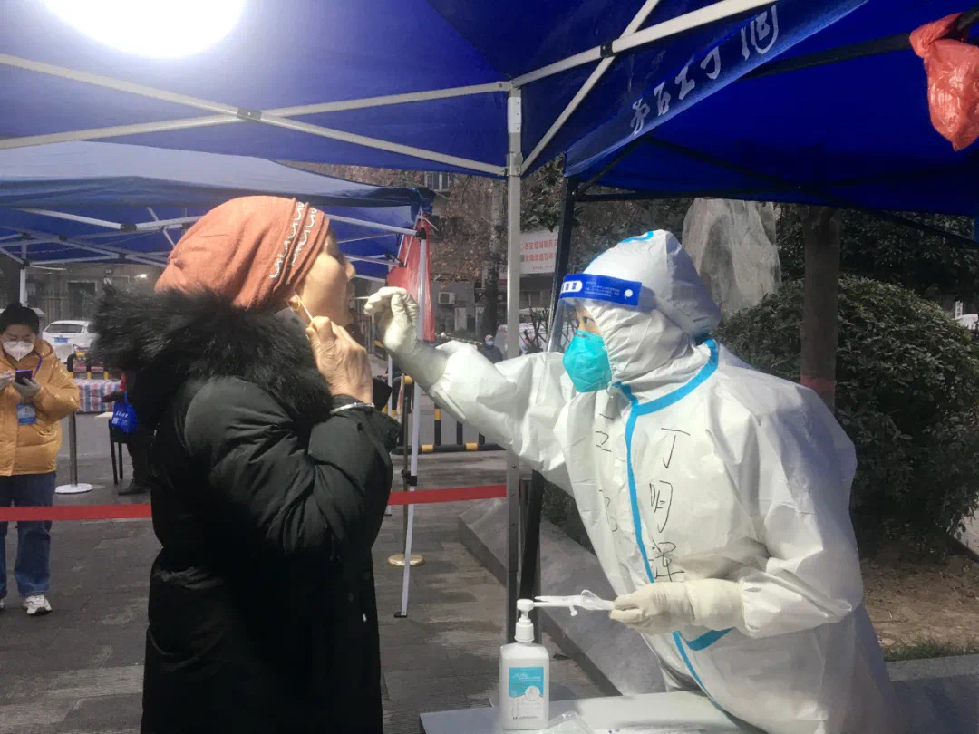 第二次婚期定于12月18日,14日丁明輝在科室交接完手頭工作,開始休假籌備婚禮事宜。晚7點(diǎn)回到家就聽說(shuō)長(zhǎng)安大學(xué)出現(xiàn)疫情,整個(gè)學(xué)校連夜進(jìn)行核酸檢測(cè)。她深知,兇猛的疫情此時(shí)更需要醫(yī)務(wù)工作者,需要自己。第二天她在社區(qū)完成自己的核酸檢測(cè),得到陰性報(bào)告后,遂結(jié)束休假返回醫(yī)院上班,此后服從醫(yī)院派遣多次外出執(zhí)行核酸采集任務(wù),并于25日起開始留住醫(yī)院準(zhǔn)備參加定點(diǎn)醫(yī)院支援。后因任務(wù)調(diào)整,2022年1月2日晚來(lái)到回民街市五院第10核酸采樣隊(duì),開始和同事一起執(zhí)行廟后街社區(qū)及市區(qū)多處核酸采集工作至今。