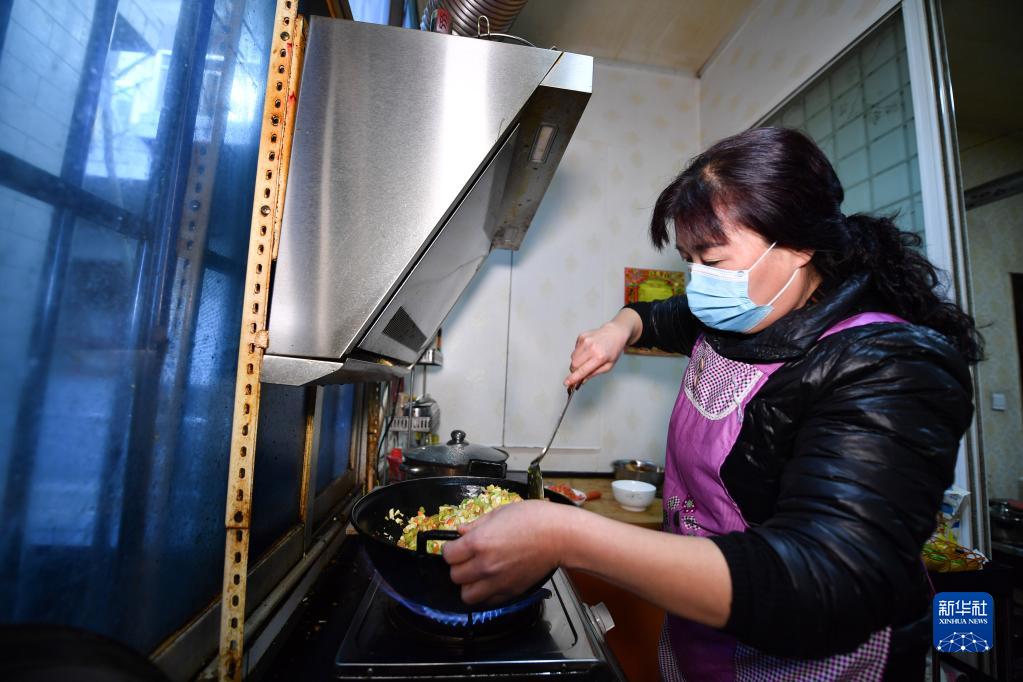 1月12日,三家村村民周娟為租住在自家房屋的居民制作午餐。新華社記者 張博文 攝