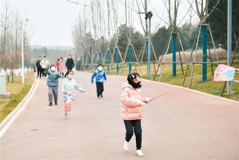 1月20日,小朋友在浐灞生態(tài)區(qū)一處公園內(nèi)玩耍。(新華社記者 張博文 攝)