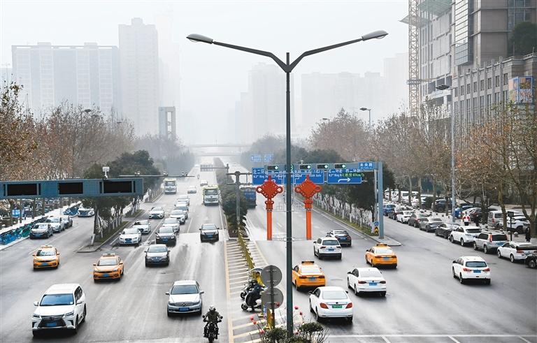 1月20日,車輛駛過西安街頭。(新華社記者 陶明 攝)