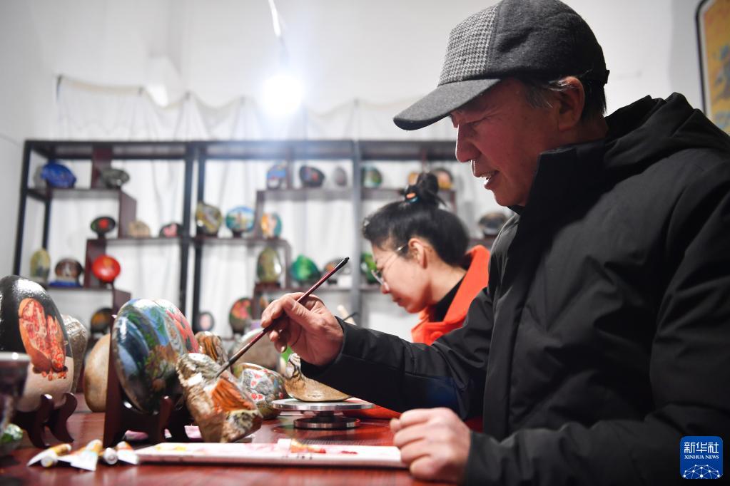 農(nóng)歷虎年將至,陜西省西安市鄠邑區(qū)的農(nóng)民畫家以石材為畫布,創(chuàng)作虎主題作品迎接新春佳節(jié)。