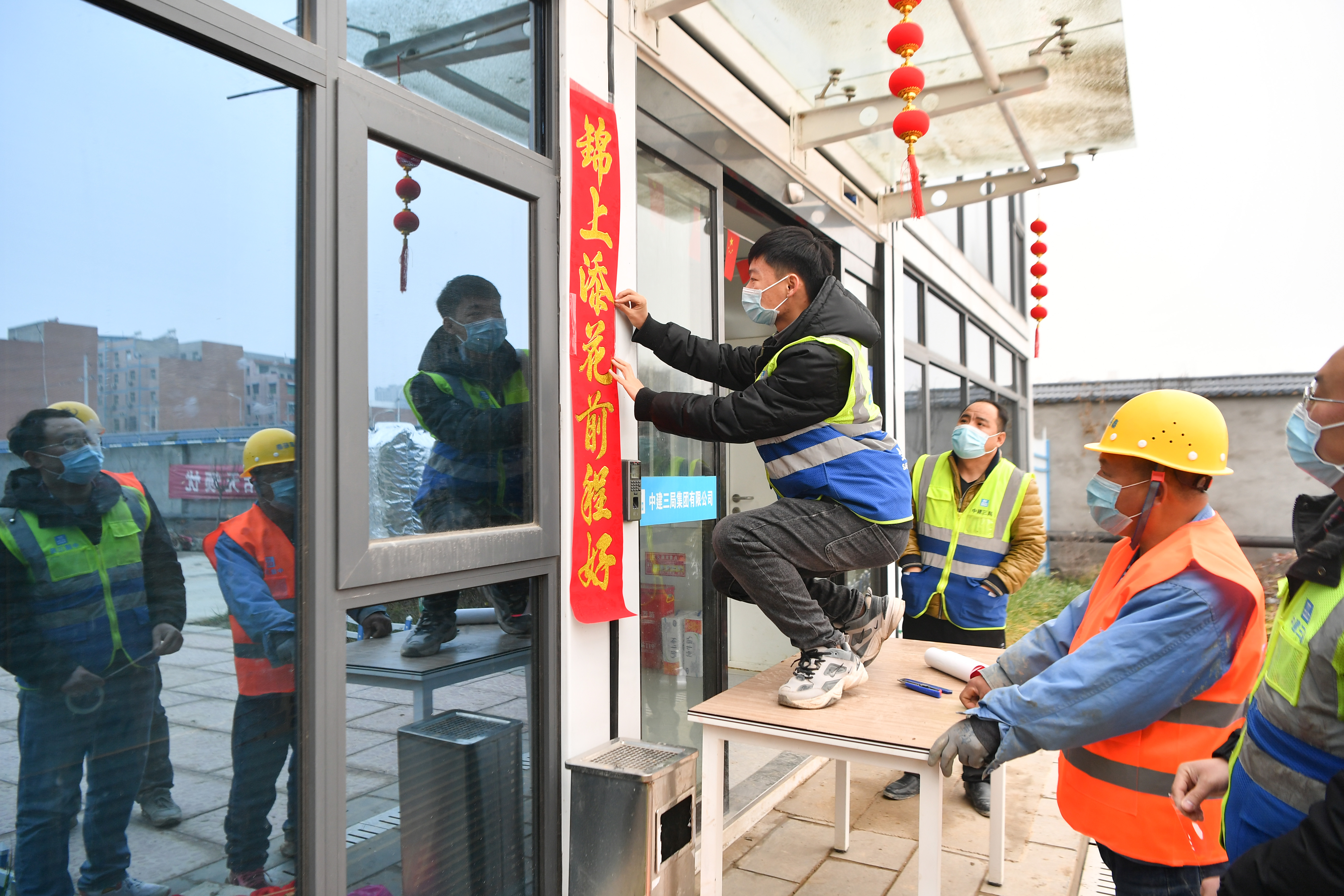 當(dāng)日是農(nóng)歷臘月二十八,在陜西省西安市第一實(shí)驗(yàn)學(xué)校建設(shè)項(xiàng)目工地,留守工地的建設(shè)者用貼春聯(lián)、掛燈籠等方式,迎接佳節(jié)的到來(lái)。