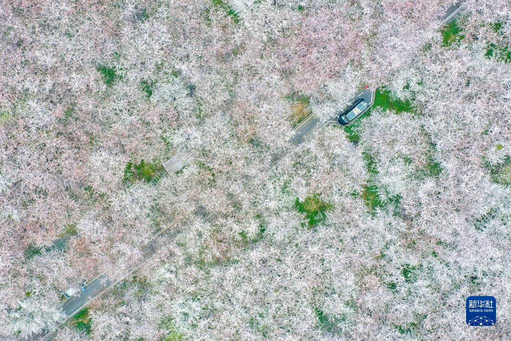 這是3月17日拍攝的貴安新區(qū)櫻花園(無人機照片)?!⌒氯A社記者 歐東衢 攝