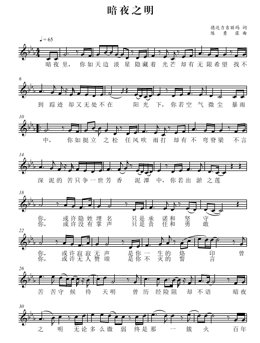 慶祝建黨百年獲獎(jiǎng)歌曲作品選集——《暗夜之明-獻(xiàn)給保密人的歌》詞曲。