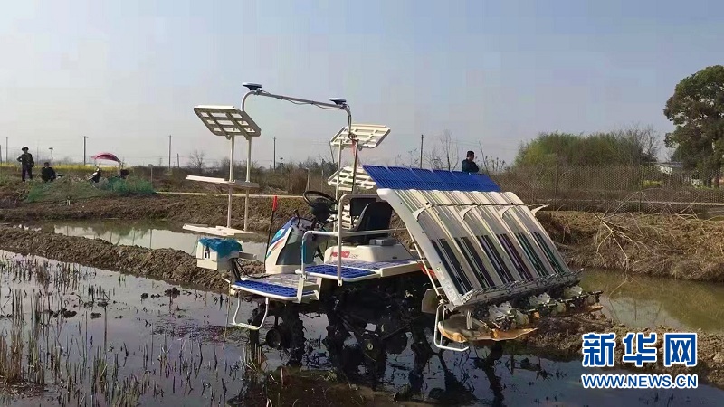 圖為無人自動(dòng)插秧機(jī)。新華網(wǎng)發(fā) 陳振亮攝