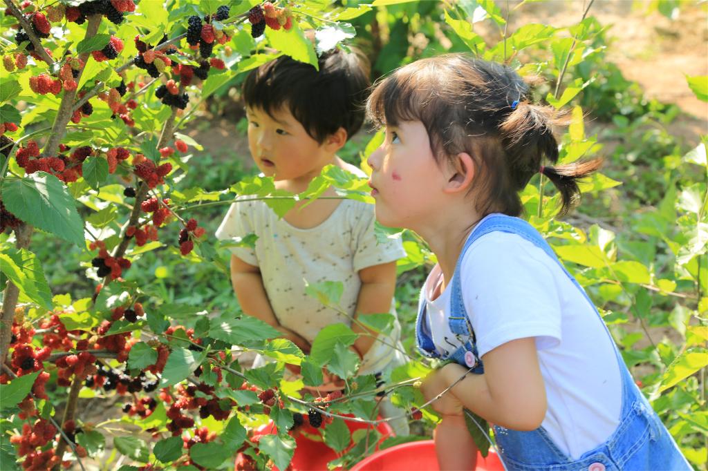 桑園里,碧綠的樹葉下掛滿了熟透的桑葚。同學(xué)們采摘桑葉,將喂食、除沙的養(yǎng)殖細節(jié)認真記到本子上。高青縣實驗中學(xué)初一學(xué)生張雅露說:“蠶的一生只有短短46天,卻能抽出1500米的蠶絲。在這里,我看到了蠶絲和用蠶絲做成的產(chǎn)品,更體會到了‘春蠶到死絲方盡’的奉獻精神。”
