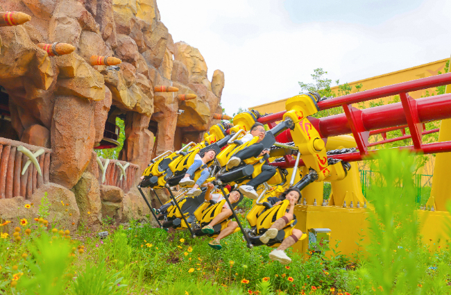在大型4D Ride項目《恐龍危機》,游客穿過昏暗低溫的實驗室,進入實景搭建的城市街道,化身“超級英雄”與復(fù)活的恐龍群“激戰(zhàn)”。逼真的視聽體驗、精彩的打斗場面讓人身臨其境,成功拯救城市的成就感更讓大小朋友們回味十足。