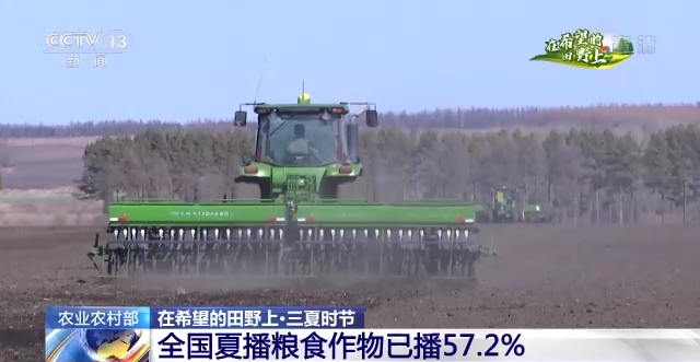 農(nóng)業(yè)農(nóng)村部最新農(nóng)情調(diào)度顯示,全國夏播糧食作物已播57.2%,其中中稻栽插六成半、夏玉米播種五成半、夏大豆播種過四成。