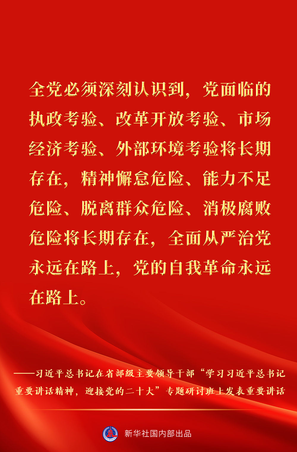 省部級主要領(lǐng)導(dǎo)干部“學(xué)習(xí)習(xí)近平總書記重要講話精神,迎接黨的二十大”專題研討班26日至27日在京舉行。中共中央總書記、國家主席、中央軍委主席習(xí)近平發(fā)表重要講話。一起來看金句速覽。