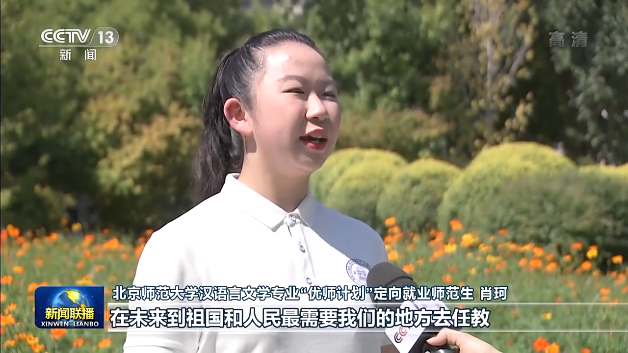 北京師范大學(xué)漢語言文學(xué)專業(yè)“優(yōu)師計劃”定向就業(yè)師范生 肖珂:總書記勉勵我們增長傳道授業(yè)解惑本領(lǐng),在未來到祖國和人民最需要我們的地方去任教。我定不負(fù)囑托,努力學(xué)習(xí),在畢業(yè)后回到我的家鄉(xiāng)。