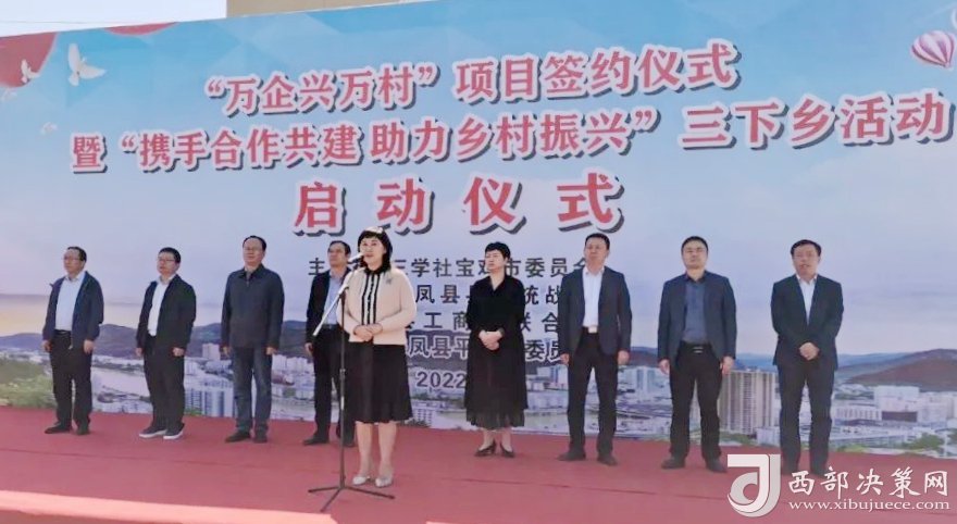 西部決策網(wǎng)訊 9月28日,為進(jìn)一步落實(shí)全市黨派工作協(xié)同協(xié)商會(huì)議精神,九三學(xué)社寶雞市委、鳳縣工商聯(lián)“萬(wàn)企興萬(wàn)村”項(xiàng)目簽約儀式暨“攜手合作共建 助力鄉(xiāng)村振興”三下鄉(xiāng)活動(dòng)啟動(dòng)儀式在鳳縣平木鎮(zhèn)隆重舉辦。 寶雞市人大常委會(huì)副主任、九三學(xué)社寶雞市委主委車爽,鳳縣人大常委會(huì)主任劉淳,中共寶雞市委統(tǒng)戰(zhàn)部班子成員、二級(jí)調(diào)研員毛建錄,中共鳳縣縣委常委、統(tǒng)戰(zhàn)部部長(zhǎng)吳海濤,九三學(xué)社寶雞市委副主委兼秘書長(zhǎng)郭紅全、副主委李獻(xiàn)軍,中共寶雞市委統(tǒng)戰(zhàn)部黨派科科長(zhǎng)湛玉忠,鳳縣平木鎮(zhèn)黨委書記張紅利、鎮(zhèn)長(zhǎng)鄧振宇,鳳縣工商聯(lián)主席陳強(qiáng)參加簽約儀式和三下鄉(xiāng)啟動(dòng)儀式?;顒?dòng)儀式由郭紅全副主委主持。