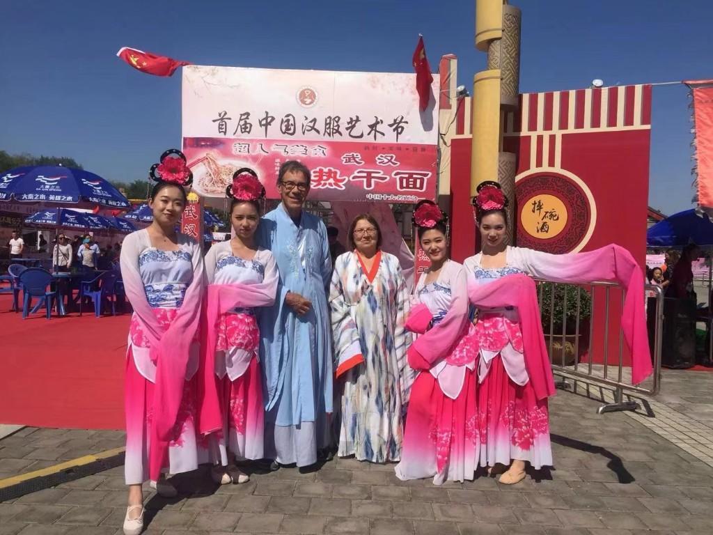 米羅夫婦身著漢服在樓觀生態(tài)文化旅游度假區(qū)游玩 受訪者供圖