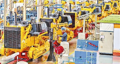近年來(lái),山東山推工程機(jī)械股份有限公司積極響應(yīng)“一帶一路”倡議,主要產(chǎn)品在“一帶一路”沿線均有銷(xiāo)售。圖為在山推總裝車(chē)間,工人正在作業(yè)。 |