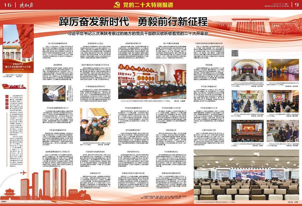 這是重要的時(shí)間節(jié)點(diǎn),也是奮斗的關(guān)鍵坐標(biāo)。在舉世矚目的中國共產(chǎn)黨第二十次全國代表大會(huì)勝利召開之際,陜西廣大黨員干部群眾歡欣鼓舞,紛紛通過各種形式收聽收看開幕會(huì),共同見證這一歷史時(shí)刻,感受著團(tuán)結(jié)奮進(jìn)的時(shí)代脈動(dòng)。本報(bào)即日起推出“二十大時(shí)光”欄目,組織記者分赴全省各地,與黨員干部群眾一起共度二十大時(shí)光,采訪報(bào)道廣大黨員干部群眾認(rèn)真學(xué)習(xí)黨的二十大報(bào)告的生動(dòng)場(chǎng)景,反映社會(huì)各界對(duì)黨的二十大的熱烈反響。