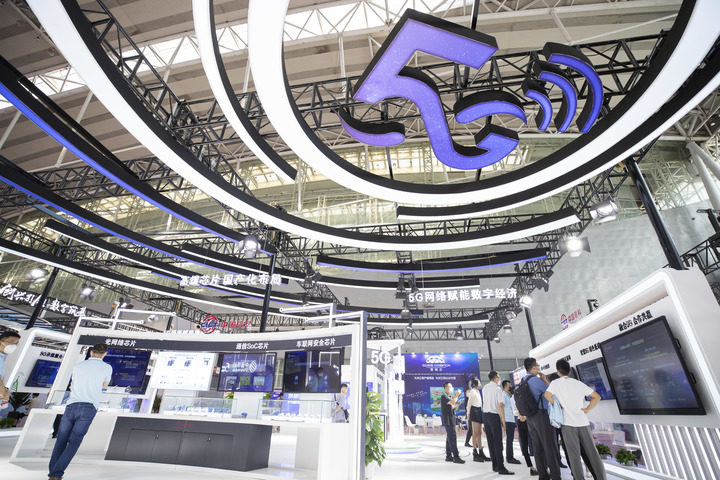 8月10日,2022世界5G大會(huì)在黑龍江省哈爾濱市開幕。工作人員在布展。新華社記者 張濤 攝