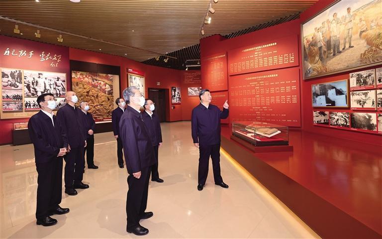 10月27日,中共中央總書記、國(guó)家主席、中央軍委主席習(xí)近平帶領(lǐng)中共中央政治局常委李強(qiáng)、趙樂際、王滬寧、蔡奇、丁薛祥、李希,瞻仰延安革命紀(jì)念地。這是習(xí)近平等在延安革命紀(jì)念館,參觀《偉大歷程——中共中央在延安十三年歷史陳列》。 新華社記者 鞠鵬攝