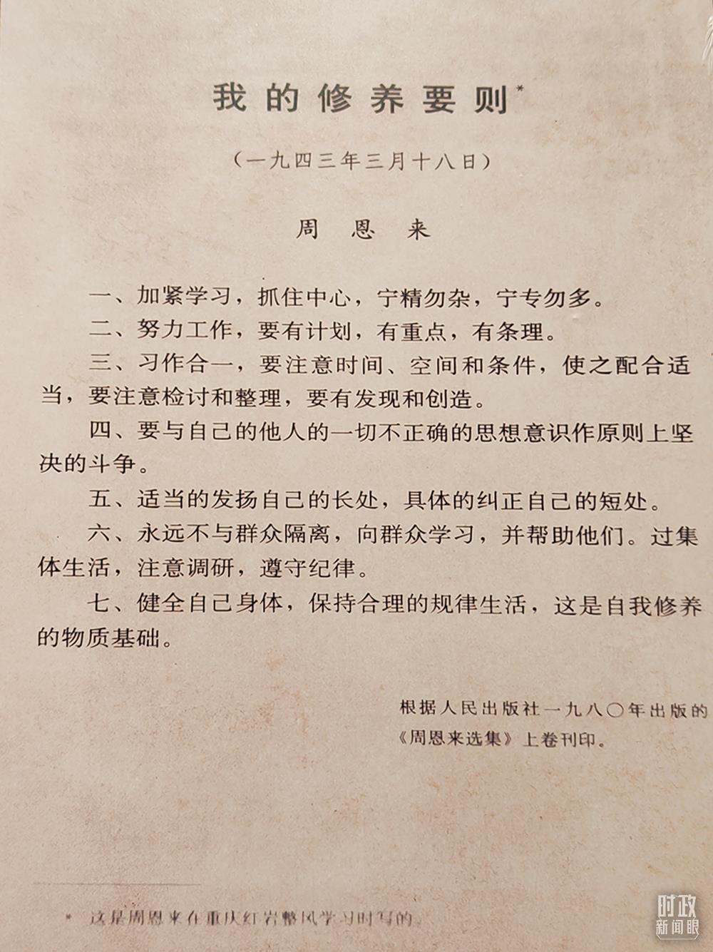 △周恩來所寫《我的修養(yǎng)要?jiǎng)t》。(總臺央視記者彭漢明拍攝)