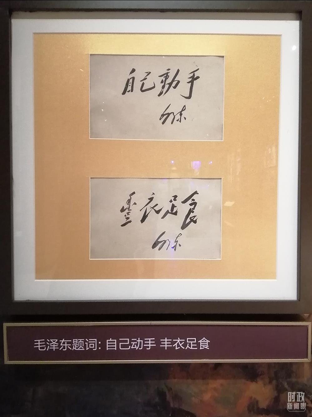 △毛澤東“自己動(dòng)手 豐衣足食”的題詞。(總臺央視記者許永松拍攝)