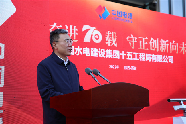 水電十五局黨委書記、董事長(zhǎng)梁向峰發(fā)表致辭。他指出,70年來水電十五局緊緊跟隨共和國(guó)的腳步,以自帶風(fēng)雷的氣概與共和國(guó)一起成長(zhǎng),數(shù)代十五局人歷經(jīng)坎坷卻勇毅向前,在祖國(guó)大地建起了一項(xiàng)項(xiàng)雄美的工程!特別是黨的十八大以來的10年,著力推動(dòng)企業(yè)高質(zhì)量發(fā)展,大力提升內(nèi)生能力,大力擴(kuò)展業(yè)務(wù)布局,在區(qū)域及領(lǐng)域均形成大土木的業(yè)務(wù)結(jié)構(gòu),在產(chǎn)業(yè)鏈上不斷加快投資業(yè)務(wù)、總承包業(yè)務(wù)、融資加總承包業(yè)務(wù)等商業(yè)模式的構(gòu)建,國(guó)際業(yè)務(wù)遍布全球多個(gè)國(guó)家和地區(qū),總量占比全局的四分之一。以延安引黃、灃河治理,易俗社改造、興慶公園改造等項(xiàng)目為代表的新名片使十五局人更加自信。黨的二十大剛剛閉幕,中國(guó)的歷史翻開了新的一頁,特殊的日子,迎來建局70周年,同時(shí)入駐新的辦公大樓,在習(xí)近平新時(shí)代中國(guó)特色社會(huì)主義思想指引下,十五局人將在新時(shí)代的浪潮中倍加努力,再創(chuàng)輝煌!
