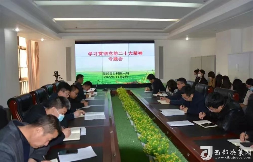 ( 西部決策網(wǎng)訊 齊春梅)11月7日,吳起縣鄉(xiāng)村振興局召開會議專題傳達(dá)學(xué)習(xí)黨的二十大精神,安排部署學(xué)習(xí)貫徹意見,局長王鑫主持,局全體領(lǐng)導(dǎo)干部參加會議。